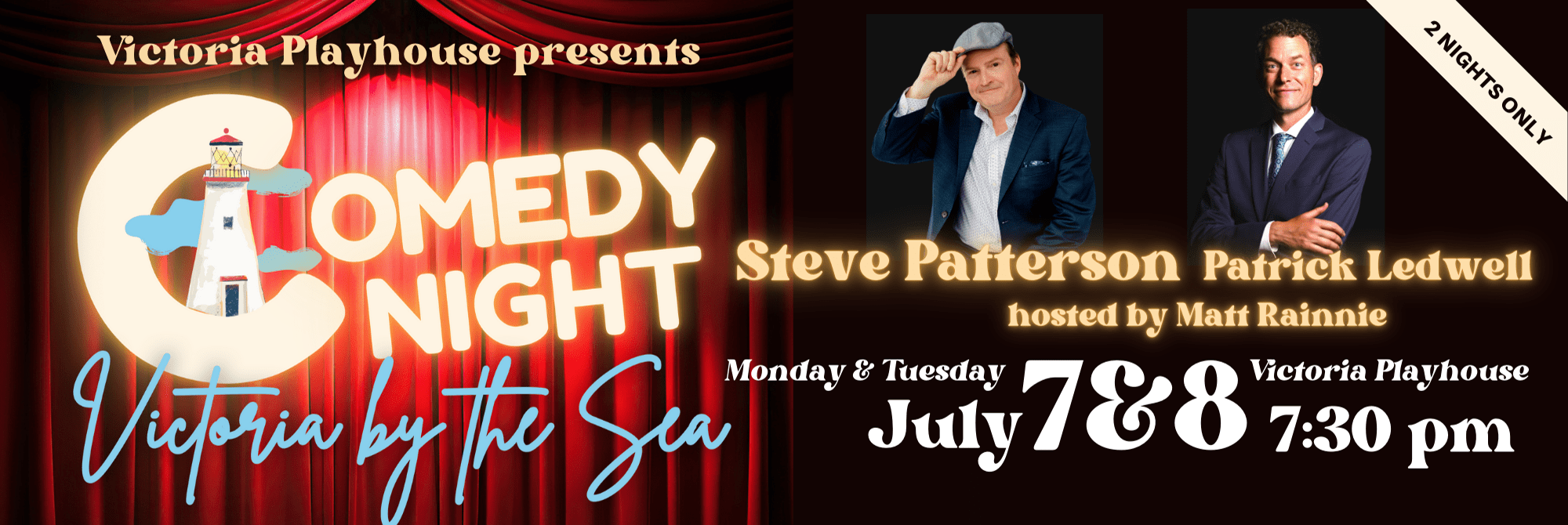 “Comedy Night Victoria by the Sea” runs two nights only, July 7 and 8. Tickets can be purchased on-line by visiting the Victoria Playhouse website at www.victoriaplayhouse.com